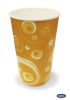 La grafica vintage arancione con decorazioni geometriche sui toni del bianco, arancio acceso e sfumato può essere usata da sola o abbinata ai bicchieri in cartoncino con la stessa grafica ma di formati e colori diversi in modo da creare un vivace assortimento di bicchieri monouso, piacevole da tenere esposto nel proprio locale e che facilita il servizio permettendo con un colpo d’occhio di riconoscere le misure a seconda del colore.Sono bicchieri monouso che si prestano a qualunque occasione come per esempio feste, convention, pranzi all’aperto, sagre ed eventi street food.