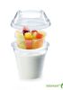 I bicchieri dessert cup con vaschetta interna sono abbinabili solamente ai coperchi in PLA trasparenti a cupola impilabile e non impilabile con e senza foro.