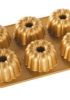 Stampo per 6 mini torte o budini con maniglie che rendono semplice il sollevamento e il capovolgimento.